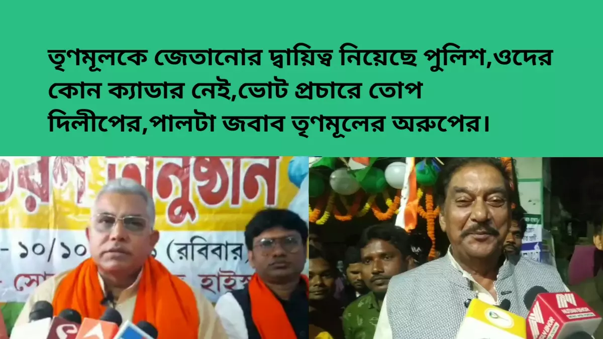 তৃণমূলের কোন ক্যাডার নেই,ওদের জেতানোর দ্বায়িত্ব নিয়েছে পুলিশ, জেলায় প্রচারে এসে তোপ দিলীপের,পালটা জবাব দিলেন অরুপ।