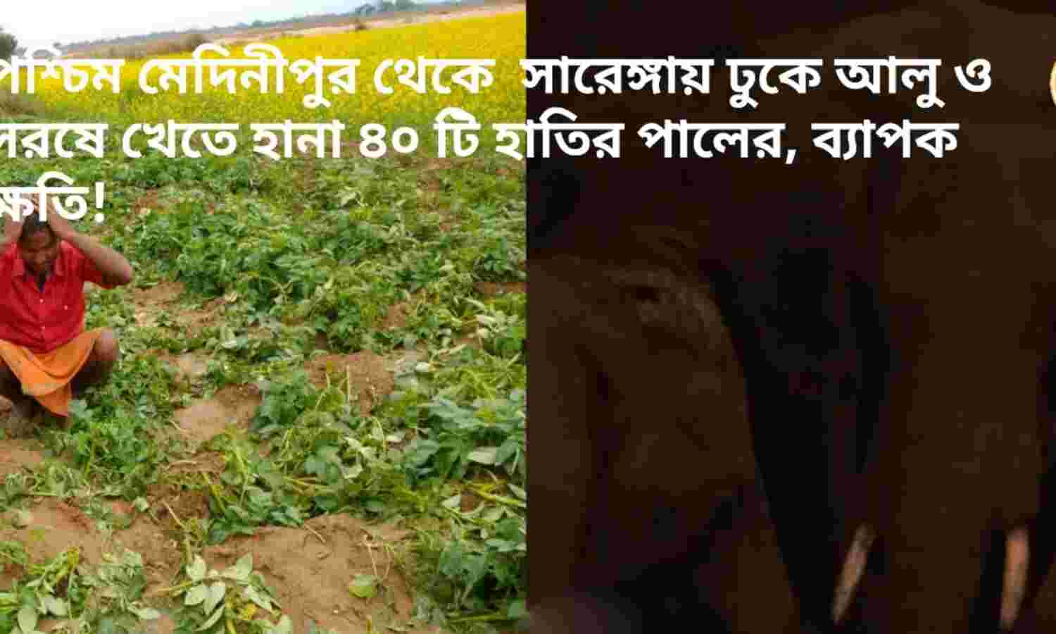 পশ্চিম মেদিনীপুর থেকে সারেঙ্গায় ঢুকে আলু ও সরষে খেতে হানা ৪০ টি হাতির পালের, ব্যাপক ক্ষতি!