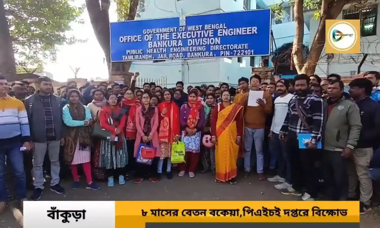 প্রায় আট মাসের বেতন বকেয়া,বাঁকুড়া পিএইচই দপ্তরে বিক্ষোভ।