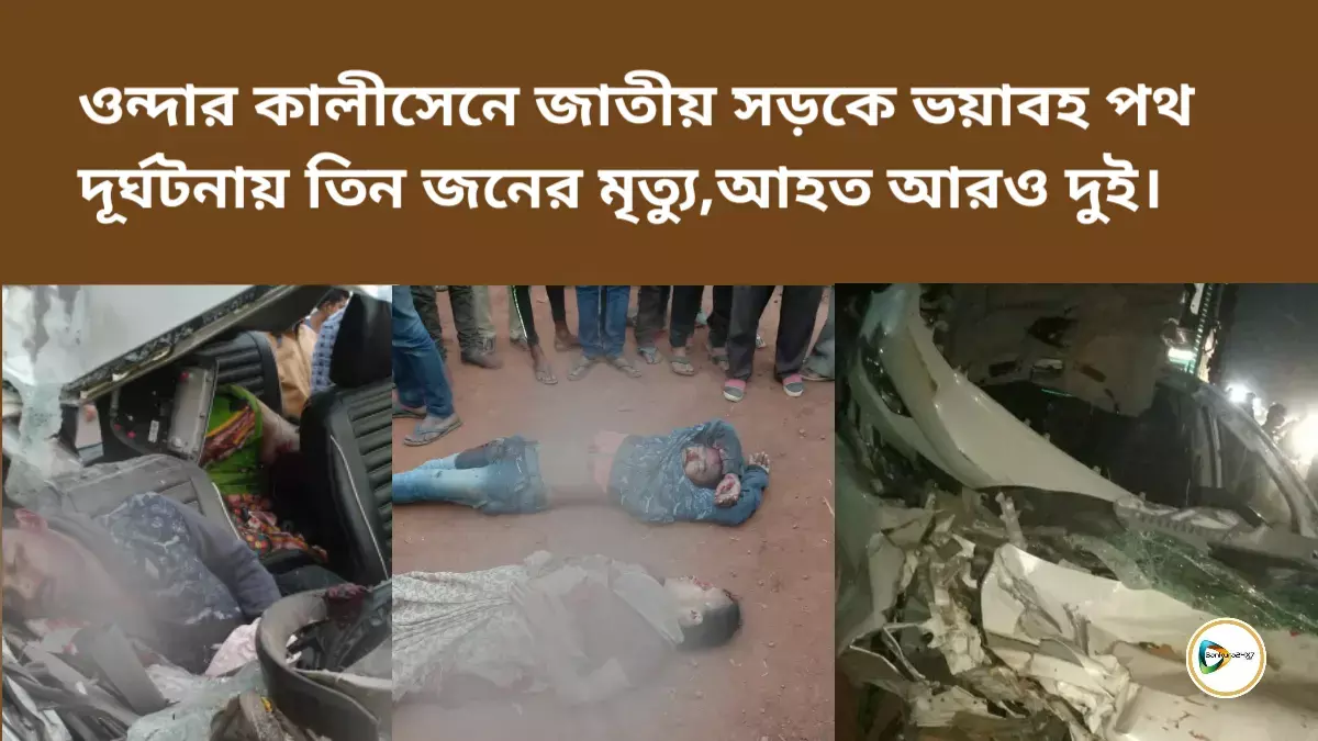 ওন্দার কালীসেনে জাতীয় সড়কে ভয়াবহ পথ দূর্ঘটনায় তিন জনের মৃত্যু, আহত আরও দুই।