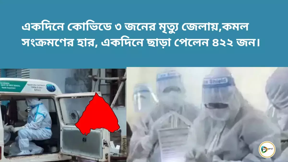 একদিনে কোভিডে ৩ জনের মৃত্যু জেলায়,কমল সংক্রমণের হার, একদিনে ছাড়া পেলেন ৪২২ জন।