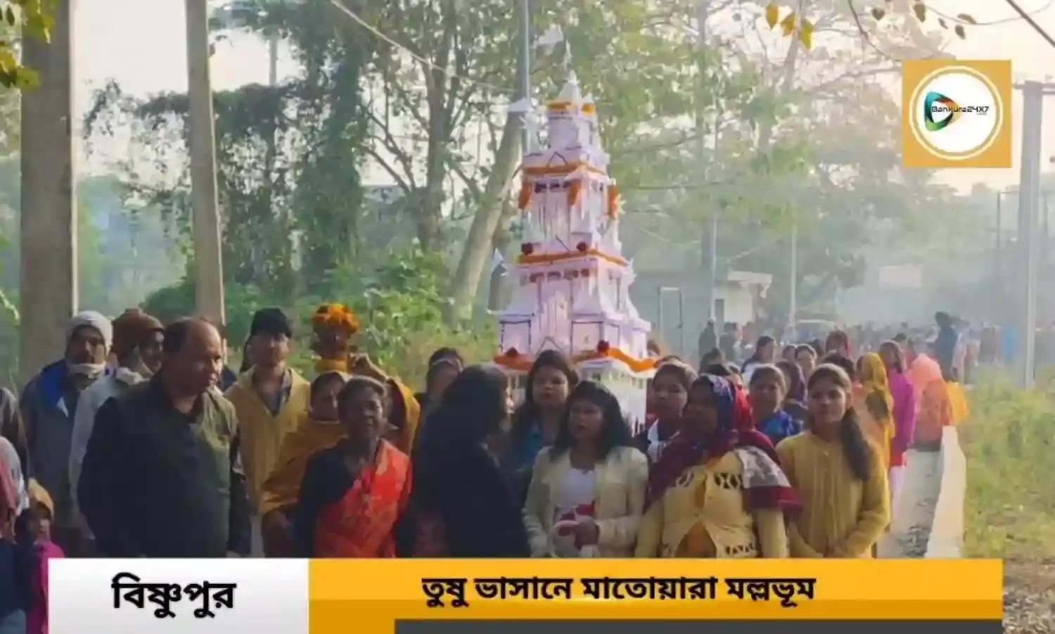 চিরাচরিত প্রথা মেনে মল্লভূম বিষ্ণুপুরে রাতভর টুসুর জাগরণের পর পৌষ সংক্রান্তির ভোর বেলাই মল্লভূমবাসী মাতলেন তুষু ভাসান পরবে।