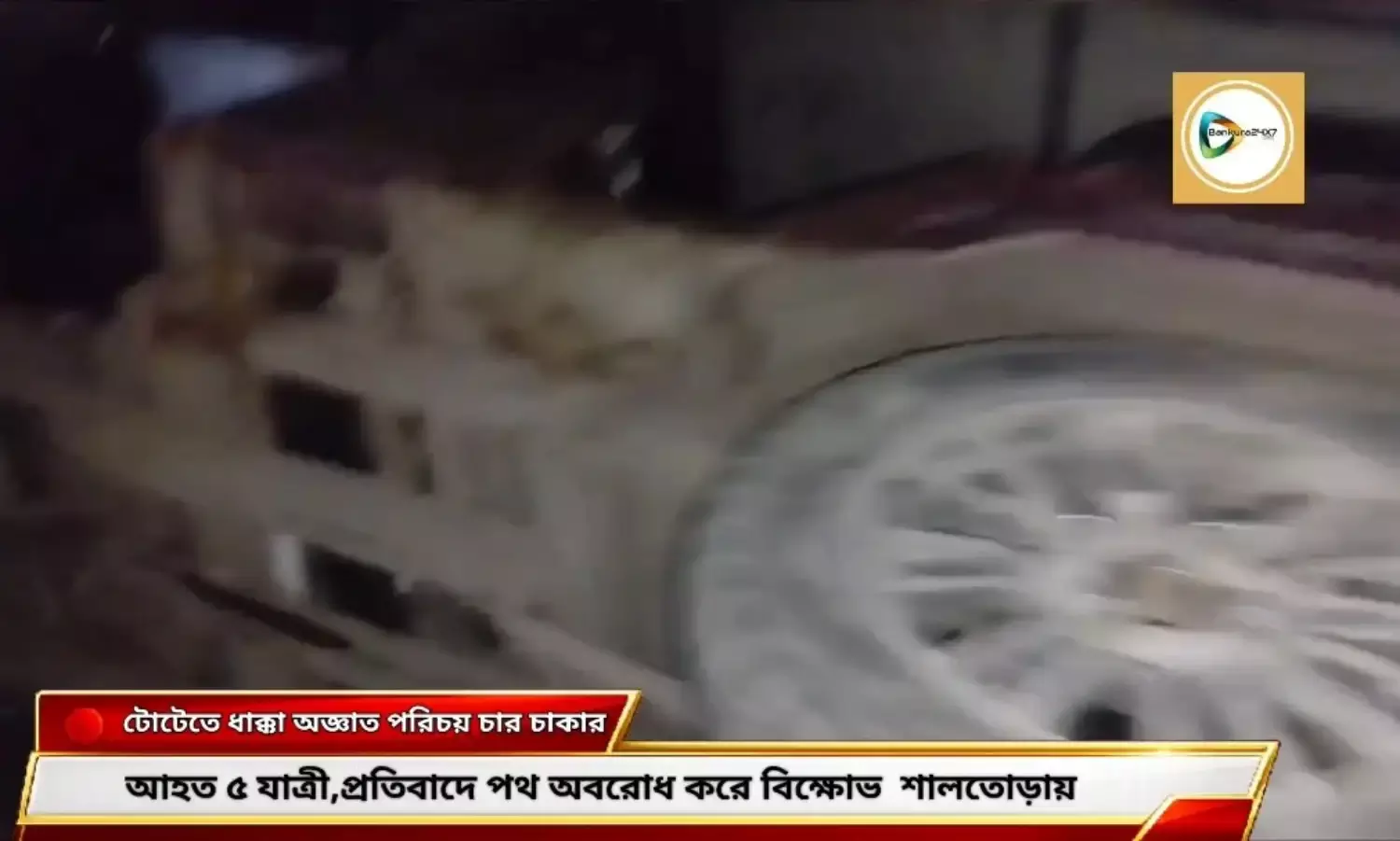বেপরোয়া চার চাকার গাড়ির ধাক্কায় টোটো উলটে আহত ৫,প্রতিবাদে পথ অবরোধ শালতোড়ায়।