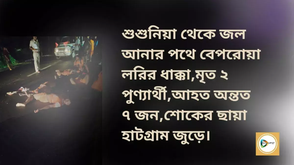 শুশুনিয়া থেকে জল আনার পথে বেপরোয়া লরির ধাক্কা,মৃত ২পুণ্যার্থী,আহত অন্তত ৭ জন,শোকের ছায়া হাটগ্রাম জুড়ে।