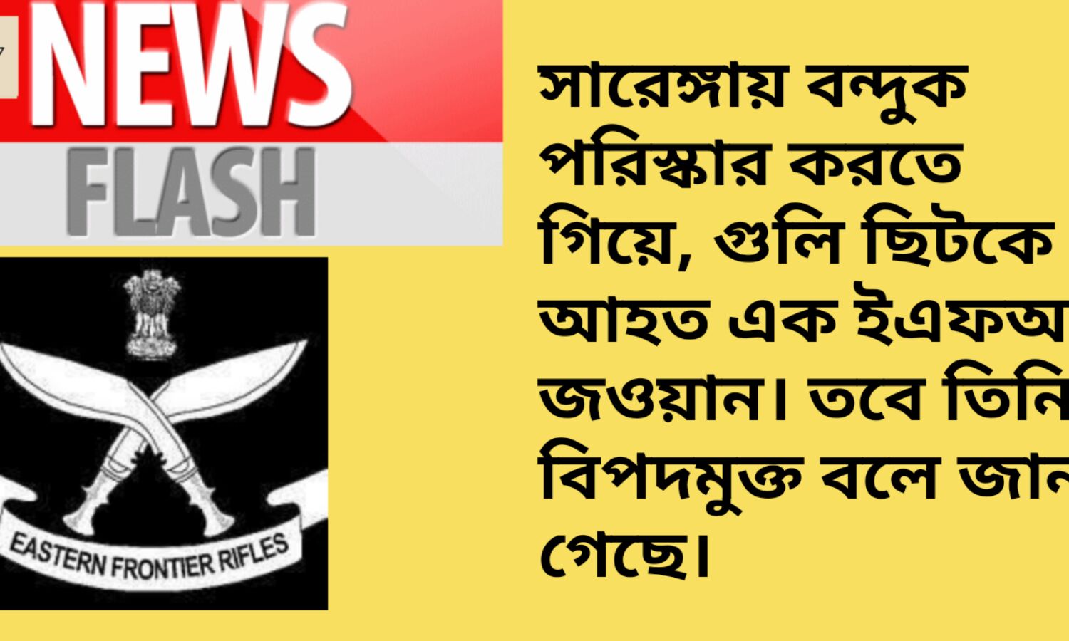 সারেঙ্গায় বন্দুক পরিস্কার করতে গিয়ে বিপত্তি, গুলি ছিটকে আহত এক ইএফআর জওয়ান। তবে, গুলিবিদ্ধ ওই জওয়ান বিপদমুক্ত বলে জানা গেছে।