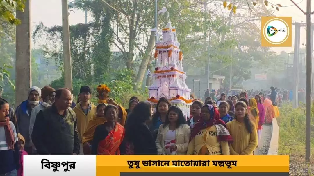 চিরাচরিত প্রথা মেনে মল্লভূম বিষ্ণুপুরে রাতভর টুসুর জাগরণের পর পৌষ সংক্রান্তির ভোর বেলাই মল্লভূমবাসী মাতলেন তুষু ভাসান পরবে।