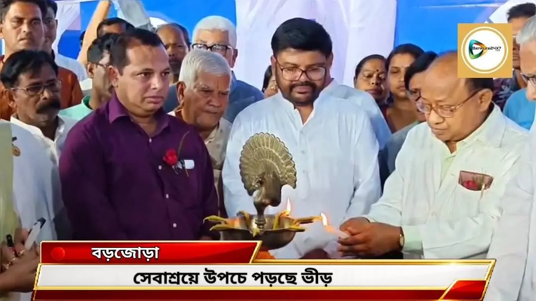 বাঁকুড়া২৪x৭প্রতিবেদন : বড়জোড়া ফুটবল মাঠে সেবাশ্রয়ের মডেল মেগা স্বাস্থ্য শিবিরে প্রচুর মানুষ চিকিৎসা পরিষেবা পেলেন৷ স্থানীয় সমাজসেবী তথা তৃণমূল নেতা সুখেন বিদ এবং তাঁর জায়া অর্চিতা বিদ, যিনি বাঁকুড়া জিলা পরিষদের পুর্ত দপ্তরের কর্মধ্যক্ষা - দুজন মিলে এলাকার মানুষদের ঘরের দোর গোড়ায় উন্নত স্বাস্থ্য পরিষেবা পৌঁছে দিতেই এই অভিনব উদ্যোগ নেন। এই সেবাশ্রয় স্বাস্থ্য শিবিরে বিভিন্ন বিশেষজ্ঞ চিকিৎসাদের পরামর্শ,তৎক্ষনাৎ ডায়াগনস্টিক পরীক্ষা, ইসিজি থেকে বিনামূল্যে ওষুধ পত্র,চক্ষু পরিষেবা ও চশমা প্রদানের পাশাপাশি রেফারেল উন্নত চিকিৎসার ব্যবস্থাও ছিল। শুক্রবার বড়জোড়ার এই সেবাশ্রয় শিবির আম জনতার ভীড় ছিল উপচে পড়া। সুখেন বিদ এবং অর্চিতা বিদ জানান,সাংসদ অভিষেক বন্দ্যোপাধ্যায়ের সেবাশ্রয়ের উদ্যোগে অনুপ্রানিত হয়ে