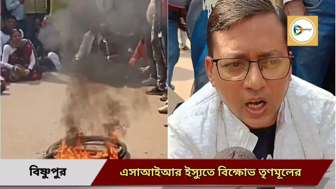 এসআইআর ইস্যুতে বিষ্ণুপুরে রাস্তায় টায়ার জ্বালিয়ে তৃণমূলের তীব্র বিক্ষোভ।